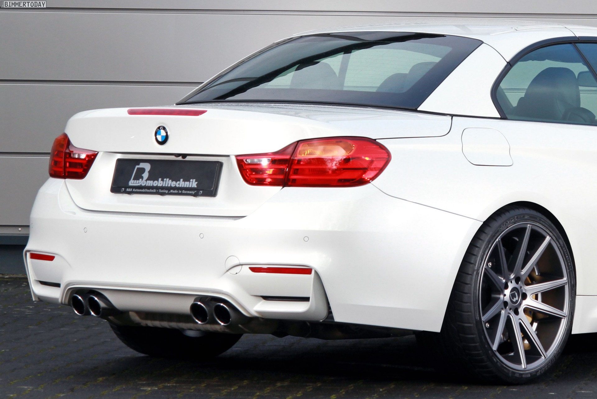 BMW M4 Cabrio ha ricevuto questo notevole aumento delle prestazioni, grazie ai tecnici di B & B Automobiltechnik che hanno installato un turbocompressore più grande, impianto di scarico modificato, un intercooler ottimizzato ed hanno anche modificato i condotti di aspirazione. A seguito delle modifiche hardware, le mappe di pressione di sovralimentazione ed iniezione del twin-turbo a sei cilindri in linea, può far sì che la potenza base di 431 CV possa esser portata a nuovi livelli di erogazione di potenza.