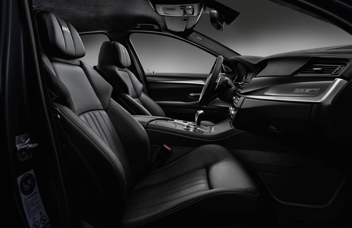 Le modanature interne BMW M Performance in carbonio con il logo “M5 Competition 1/200” indicano le qualità high performance del modello, nonché il fatto che la BMW M5 Competition Edition è realizzata in appena 200 esemplari destinati a tutto il mondo. L’atmosfera sofisticata degli interni è caratterizzata fortemente dalle finiture in pelle Merino Black con cuciture a contrasto in Opal White e tappetini color Anthracite con bordi in pelle Merino Opal White. Inoltre, sia il guidatore sia il passeggero anteriore trovano posto nei sedili multifunzionali M, le cui molteplici opzioni di regolazione elettrica garantiscono un perfetto equilibrio tra il confort e sostegno laterale. Anche qui la scritta bianca “///M5” ricamata sui poggiatesta sottolinea l’esclusività della vettura.
