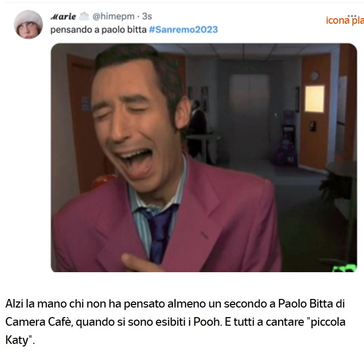 https://www.adnkronos.com/sanremo-2...non-mi-sentivo-la-voce_14Ou6abiAE8aaBaSczyTcs Siamo in una società finita, a qusto ragazzino gli sono mancati sonori ceffoni quando servivano, posto che glieli darei anche adesso (a due a due, fino a quando non diventano dispari), secondo me in un mondo normale, questo tizio non dovrebbe più calcare le scene
