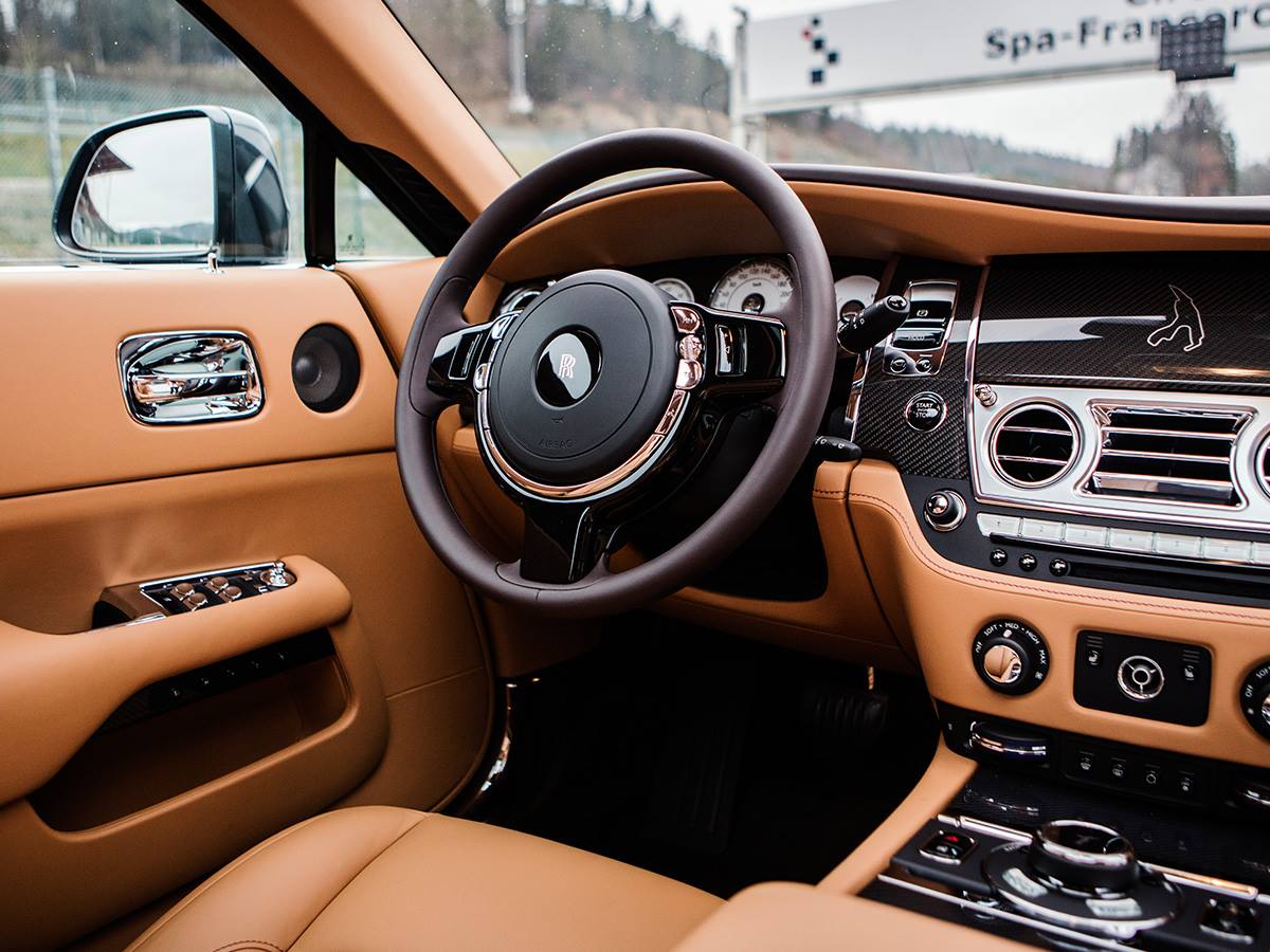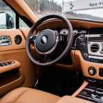 Rolls Royce Wraith Spa-Francorchamps Edition è realizzata in tonalità esterna “Flagstone” – descritto come un nuovo modo di intendere il più classico dei “Racing Green” Hue, abbinato ad un coachline Consorte Red, mentre la silhouette dell’intero tracciato di Spa-Francorchamps realizzata in pelle Tan, costituisce un motivo distintivo del modello.
